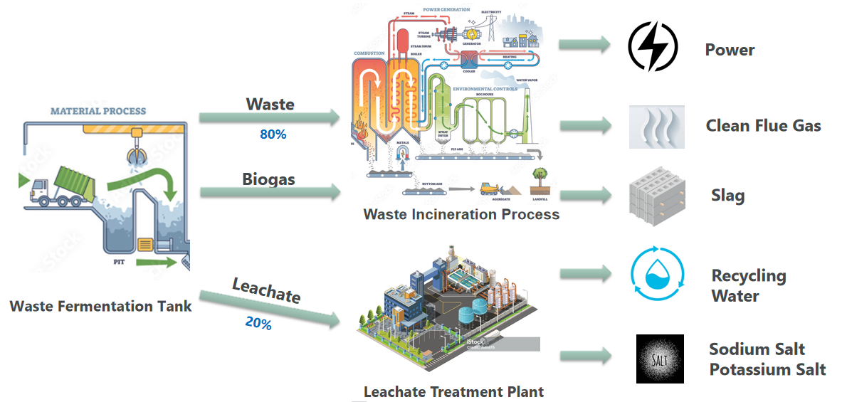 Mature waste incineration power generation technology is currently the best choice for waste treatment. It can convert waste into electricity, building materials, recycled water, industrial salt, etc.