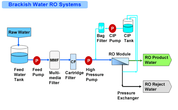 The process is substantially the same as sea water reverse osmosis, but